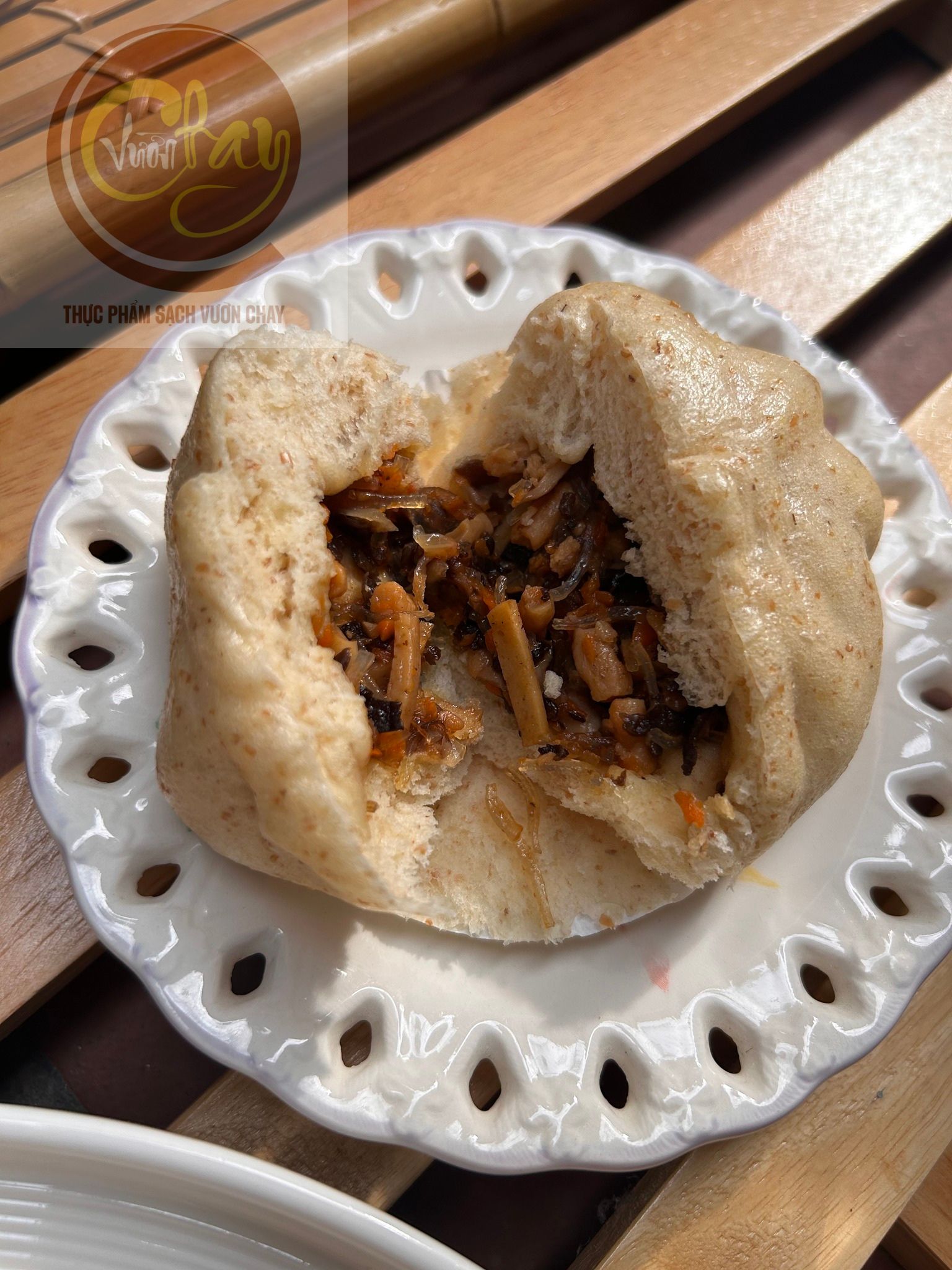 Bánh được làm từ bột mì hữu cơ và bột nguyên cám, lên men bằng sourdough tự nhiên, giúp bánh mềm, thơm, dễ tiêu và giữ được nhiều dưỡng chất hơn so với bánh bao thông thường.