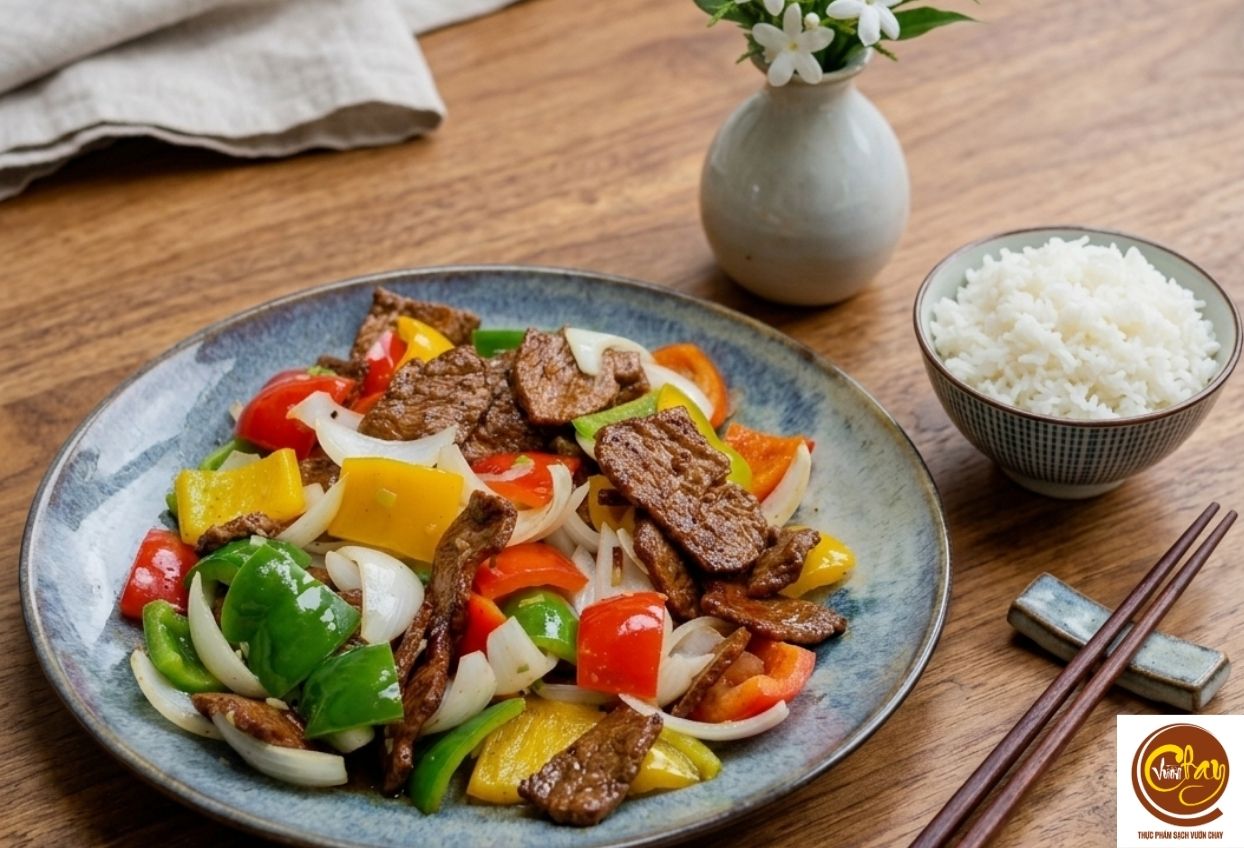 - Bò lát chay xào rau củ