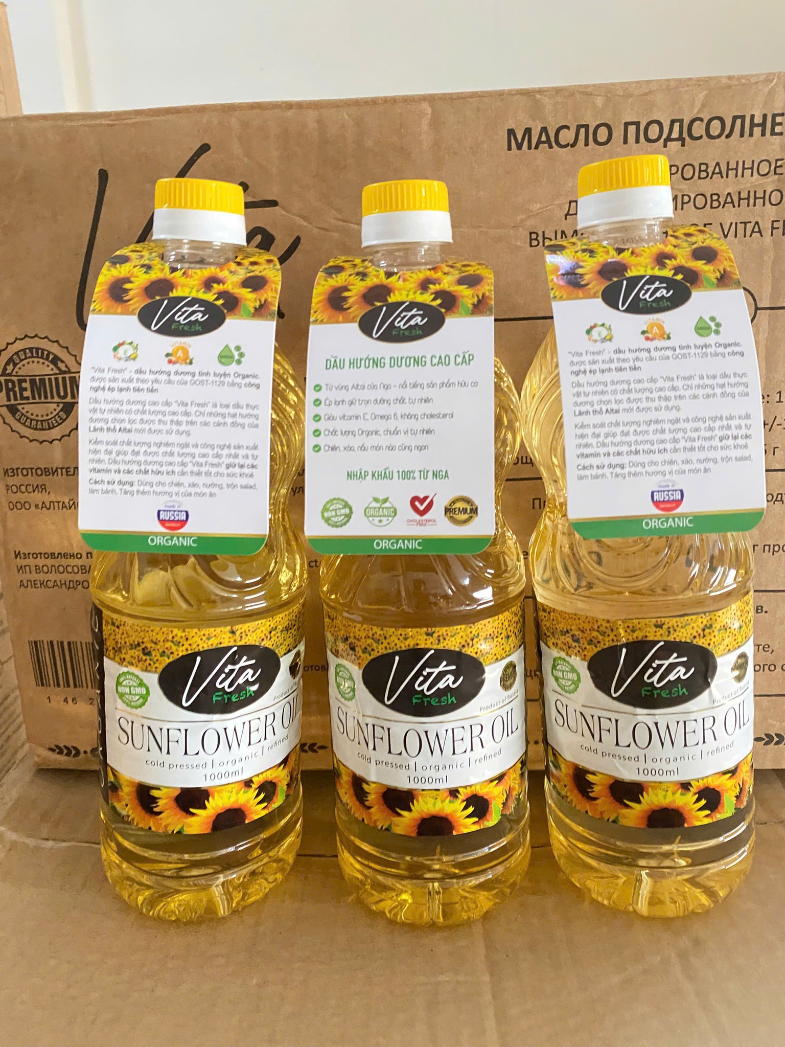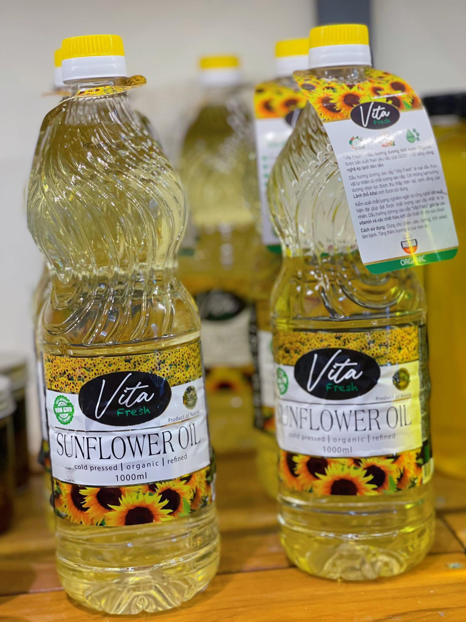 dầu hướng dương hữu cơ vita fresh, vita fresh sunflower oil, dầu hướng dương ép lạnh, dầu hướng dương nga, dầu hướng dương organic, dầu hướng dương tốt cho tim mạch, dầu ăn hữu cơ.