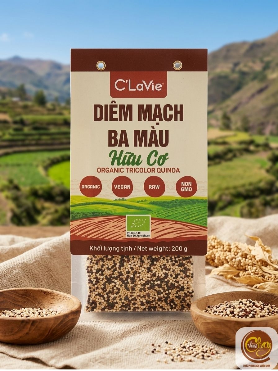 Diêm mạch ba màu hữu cơ C’LaVie là dòng hạt dinh dưỡng chất lượng cao, giàu protein thực vật, dễ chế biến và phù hợp cho bữa ăn lành mạnh mỗi ngày.
