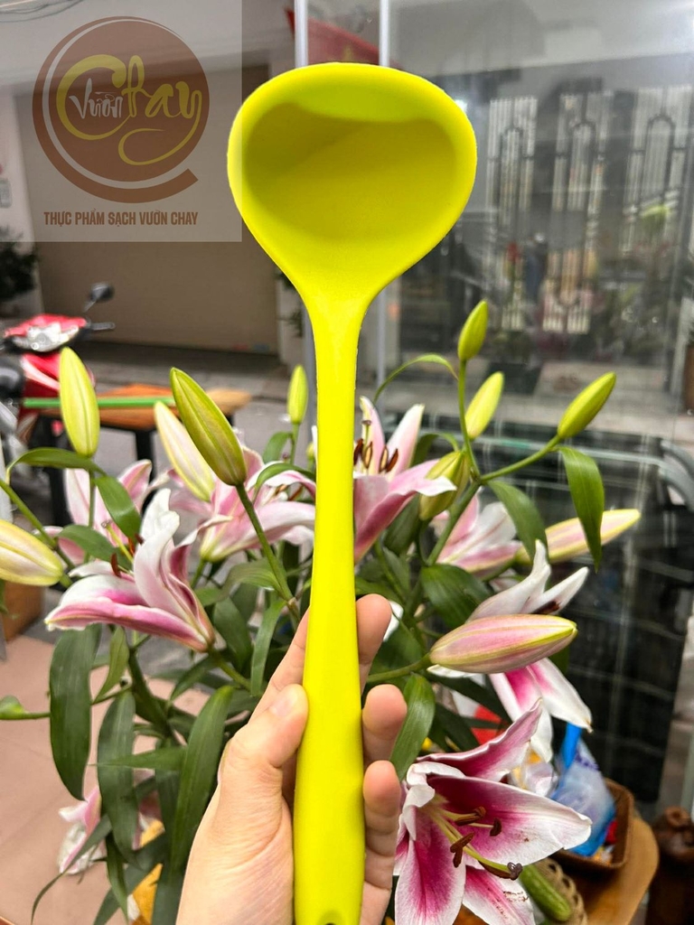 Cán muôi được thiết kế dày và chắc chắn để chịu được lực khi khuấy hỗn hợp enzyme có nhiều trái cây hoặc nguyên liệu đặc.