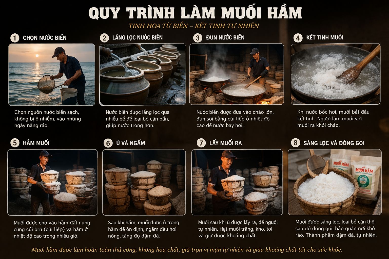 Nhờ phương pháp hầm truyền thống, muối giữ được nhiều khoáng chất tự nhiên từ biển.